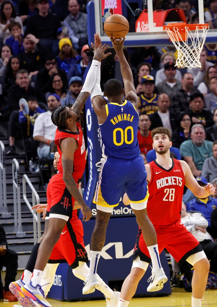 勇士只能利用库有引力发起阵地战进攻,库里挡拆点名申京/海王是勇士好用的起手式。火箭也准备充分,双人夹击库里,其他人轮转补内切——不给勇士必进的两分球,考验勇士其他人的边角三分抽奖效率。