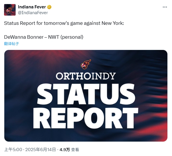 而对于赛季至今两次遭遇脚踝伤势的坎宁安:"我认为索菲也准备好登场了,她看起来很不错,场上时机判断很棒。找回比赛节奏和时机是最关键的事,然后就是能够做一些变向。她们两人的状况看起来都不错。"