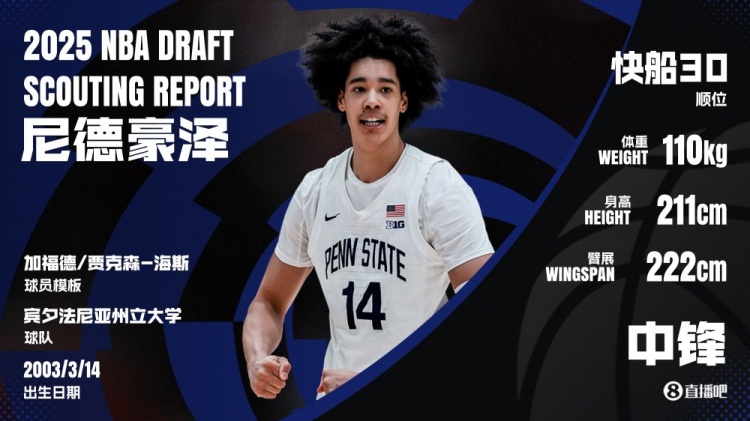 尼德豪泽或许是本届最典型的饼锋了,拥有2米11身高与2米22臂展,外加不错的动态天赋,极强的终结冲击力足以令人垂涎,但劣势也很典——进攻端除吃饼外没什么亮点,防守端又容易沉迷赌博式盖帽且缺乏换防弹性。尽管在快船体系下,作为潜在替补中锋人选,尼德豪泽并不需要越权去做过多的事情,只需要专注于挡拆顺下吃饼与蹲坑护筐,规避进攻决策与外线换防即可。但如果他在两三年内未练出近筐终结与投篮,这位现在就已经23岁的瑞士中锋恐怕有迅速淡出联盟的危险。