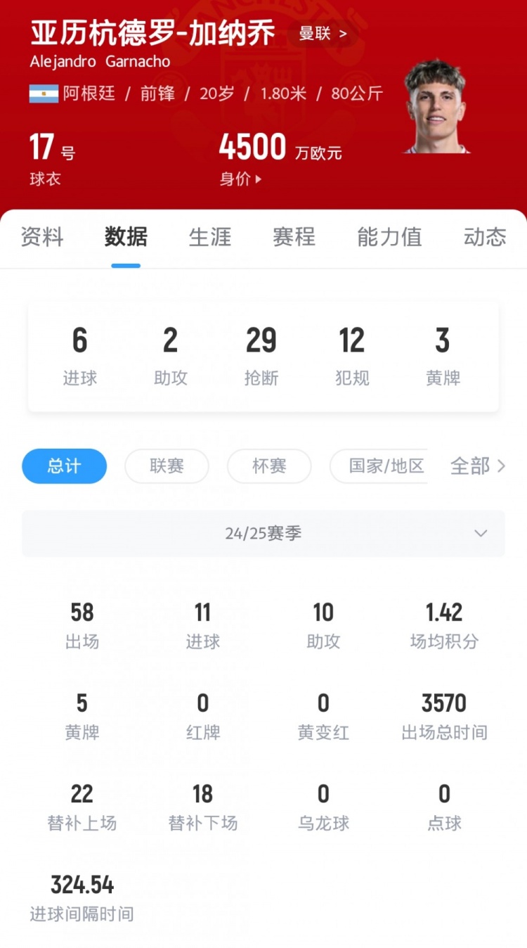 “如果加纳乔能得到足够的休息,他就会带着更高的斗志回归,他需要这样的成长曲线,而这也需要主教练的帮助。但球队现在无法承受让加纳乔休息的代价,我觉得这让他看起来有些疲惫,而不是其他原因。但如果曼联真的考虑放弃加纳乔,那将是一个疯狂的决定。”