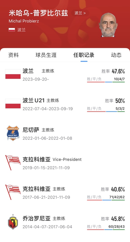 衷心感谢所有共事同仁、波兰足协工作人员,你们始终是我坚实的后盾。感谢足协主席及理事会的信任,当然也要感谢所有与我并肩作战的球员们。我将继续为你们所有人加油助威,因为国家队是我们共同的国家财富。同时也要向我们伟大的球迷致谢,无论顺境逆境你们都坚定相随。国家队的每场比赛都能听到你们的呐喊声。”