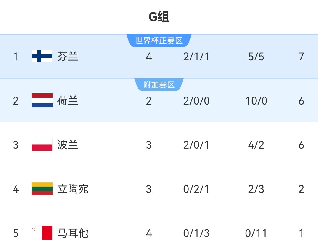在昨天凌晨进行的世预赛中,波兰1-2不敌芬兰。目前在世预赛欧洲区G组2胜1负,排名第3。