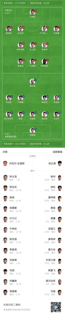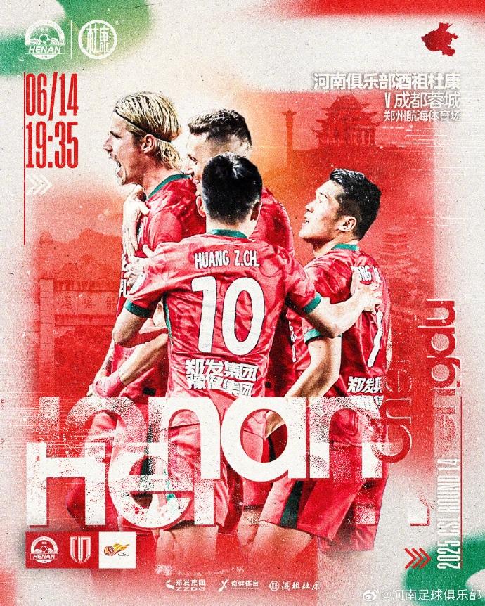 06月14日讯 北京时间19:35,中超第14轮,河南主场对阵成都蓉城,赛前首发阵容出炉!
